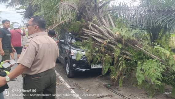 KABATERKINI.Com – Badan Penanggulangan Bencana Daerah (BPBD) Kota Padang bergerak cepat untuk melakukan pemotongan dan pembersihan material pohon tumbang akibat angin dan hujan deras yang mengguyur Kota Padang, Senin (19/8/2024) siang.