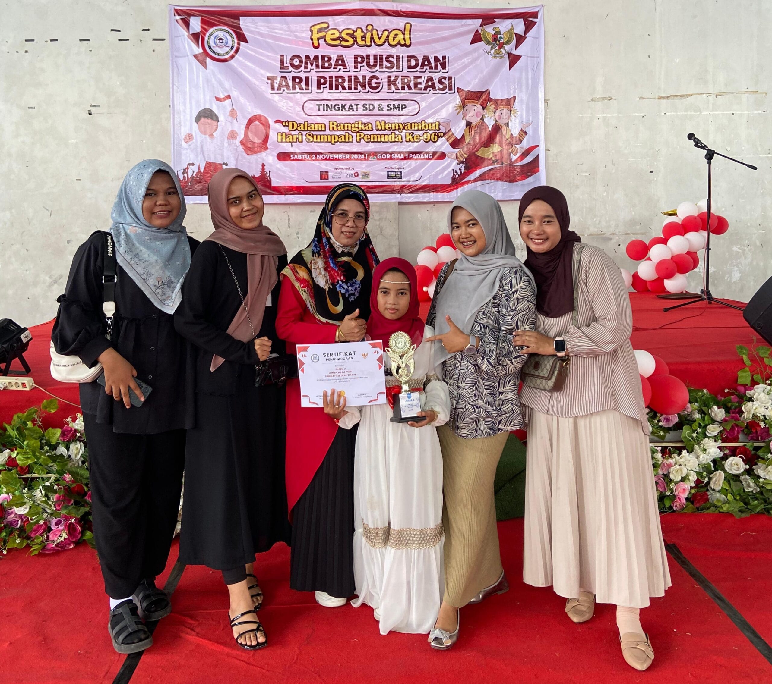 KABATERKINI.Com – Aula SMAN 1 Padang serasa bergema saat Athira Luthfia Ramadian dengan lantang membaca puisi tentang Sumpah Pemuda di panggung Festival Lomba Puisi dan Tari Kreasi 2024, Sabtu (02/11/24).