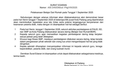 PADANG, KabaTerkini.com – Dinas Pendidikan dan Kebudayaan Kota Padang meliburkan sekolah bagi murid TK/PAUD, SD…