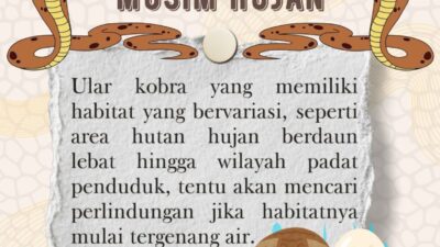KabaTerkini.com – Salah satu hal yang juga harus diantisipasi pada musim hujan adalah kemunculan ular…